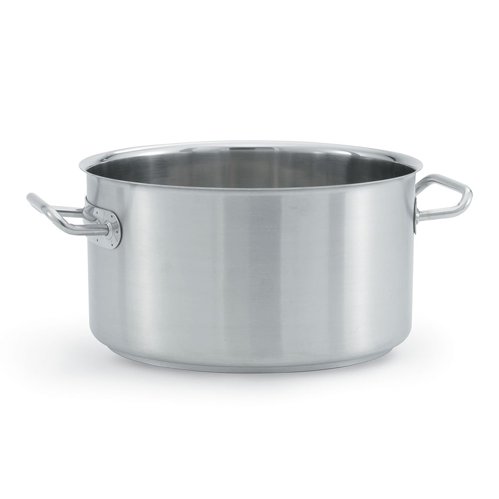 The permanent bonded aluminum and stainless steel bottom layer of this Intrigue 33 Quart Sauce Pan provides even heating and exceptional durability.
