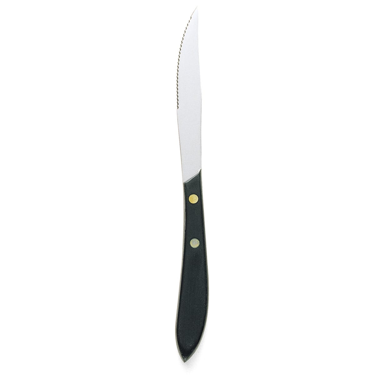 This Walco steak knife is durable and tough plus it brings some elegance to your dinner table. This knife has an easy to clean stainless steel blade and a plastic handle.