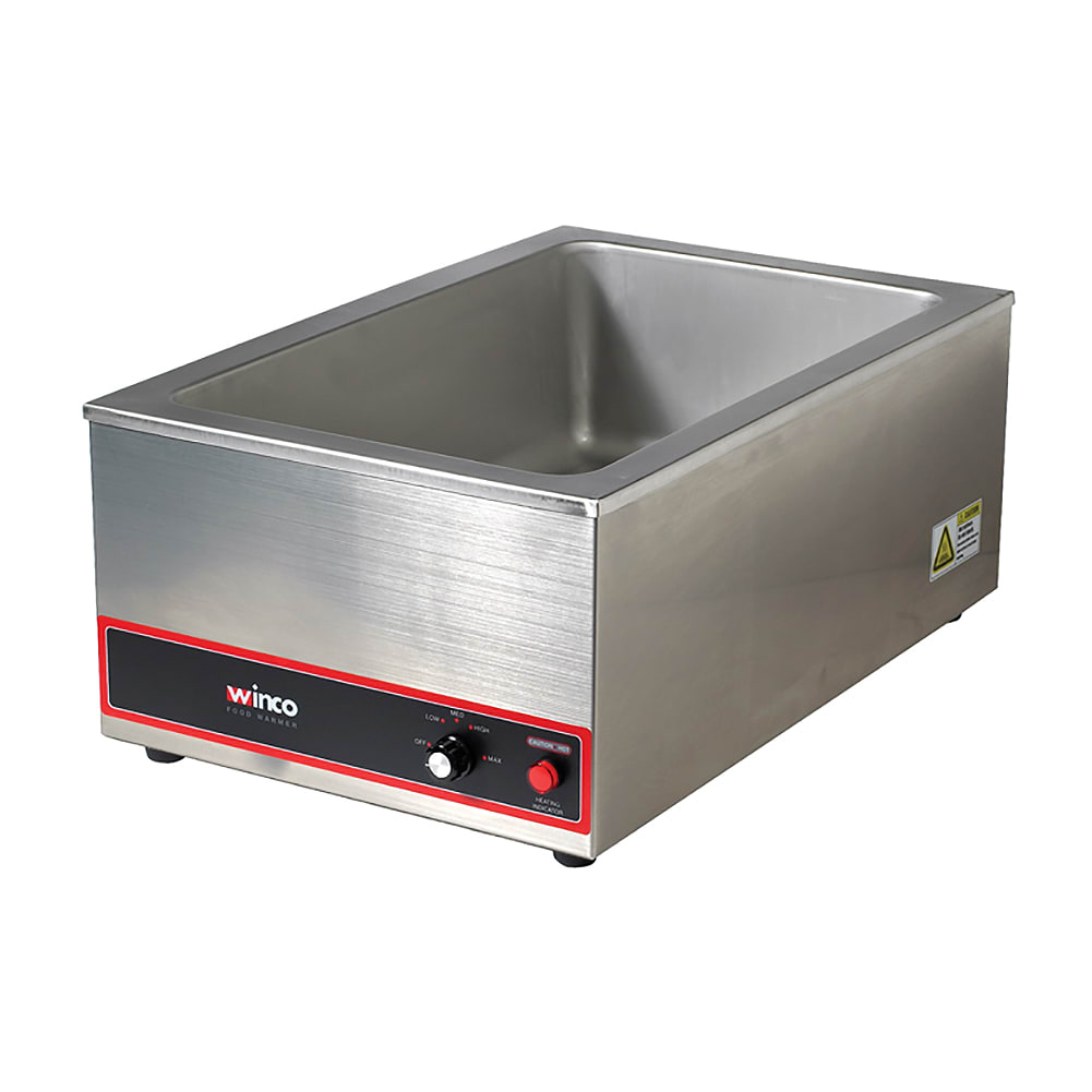 This Electric Food Warmer from Winco® features a heavy-duty stainless steel body for commercial use and the energy-efficient design heats faster, resulting in lower utility costs.