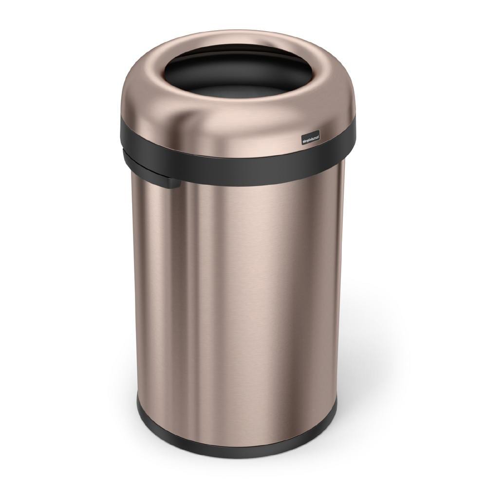 This 60 liter open top waste can from simplehuman features an open lid design that makes it easy to toss in trash on the go. The heavy-gauge steel construction makes this can dent-resistant and sturdy and is perfect for coffee shops, restaurants or home use!