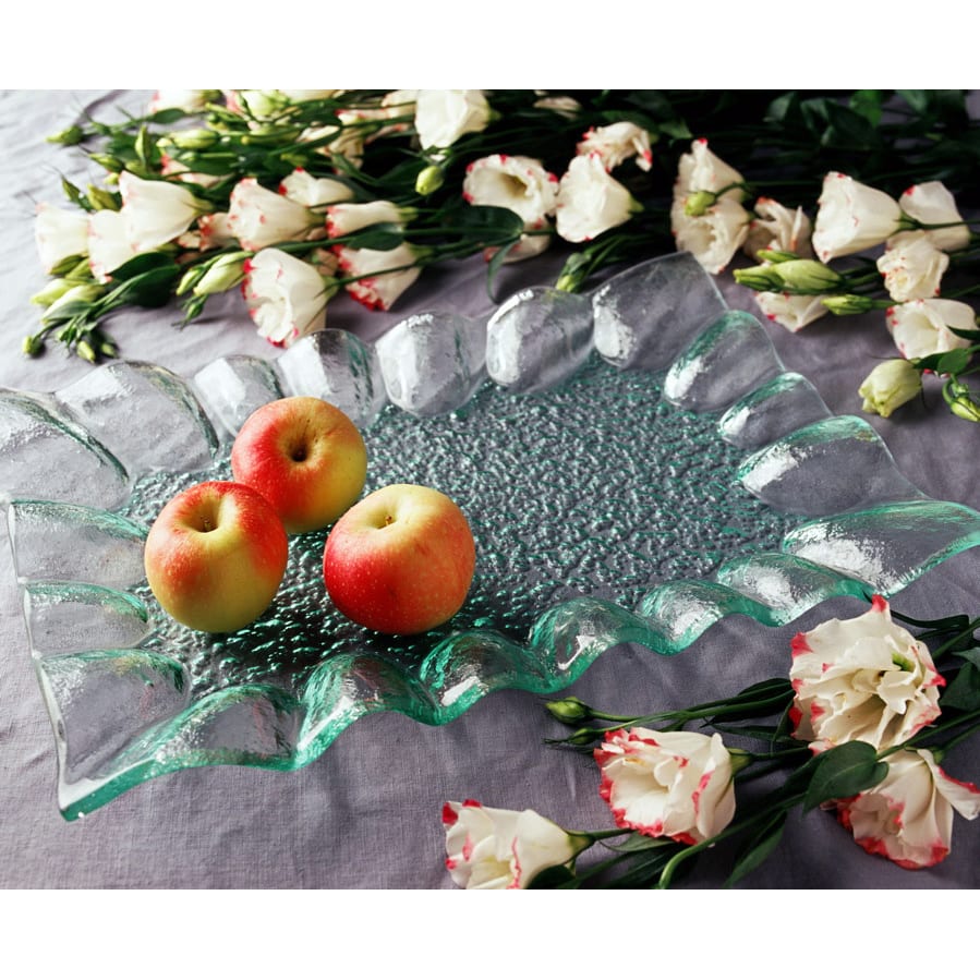 Wavy Rimmed Clear Glass Rectangular Dish, 16-1/2" x 11-3/4"