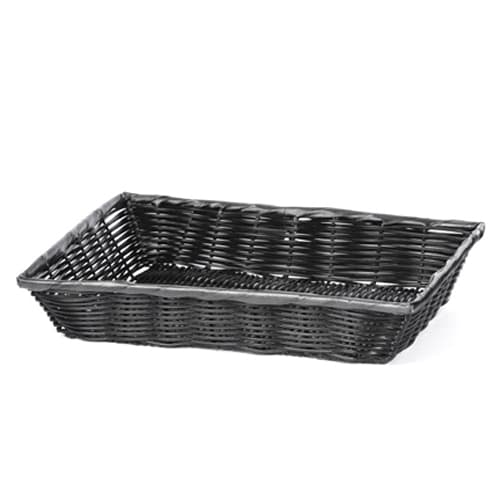 This rectangular basket from Willow Specialties is a great choice for displaying your baked creations in a display case. Perfect for use in bakeries! This basket is black in color and is made from polypropylene.