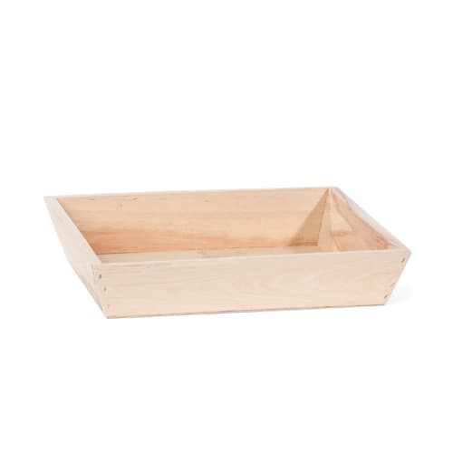 This rectangular wood tray from Willow Specialties is perfect for displaying fruits or vegetables. Great for use in markets or restaurants. This tray is made of wood and is quite durable.