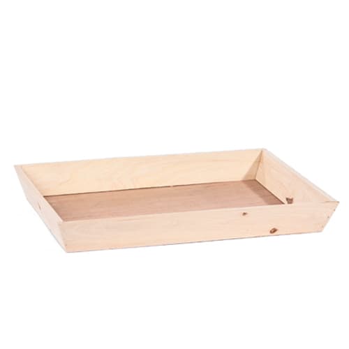 This Willow Specialties tray is rectangular in shape and made of durable wood. This tray is perfect for storing or displaying fresh vegetables and fruits. Great for use in markets!