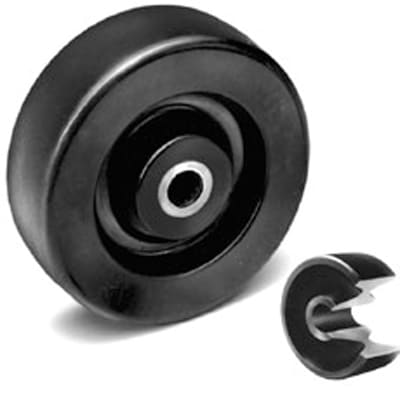 This heavy duty, rubber tread bound to steel core is ideal for all rolling surfaces.
