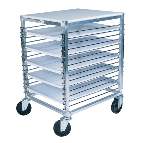 Ideal pan rack for cooling, transporting, storing and proofing items. This rack maneuvers on four 5" heavy duty polyurethane swivel stem casters.