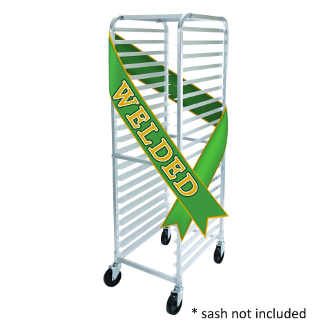 This Winco® aluminum sheet pan rack can hold standard full-size 18 by 26" sheet pans or twice as many half-size sheet pans. These racks are fully welded and can hold up to 650 pounds.