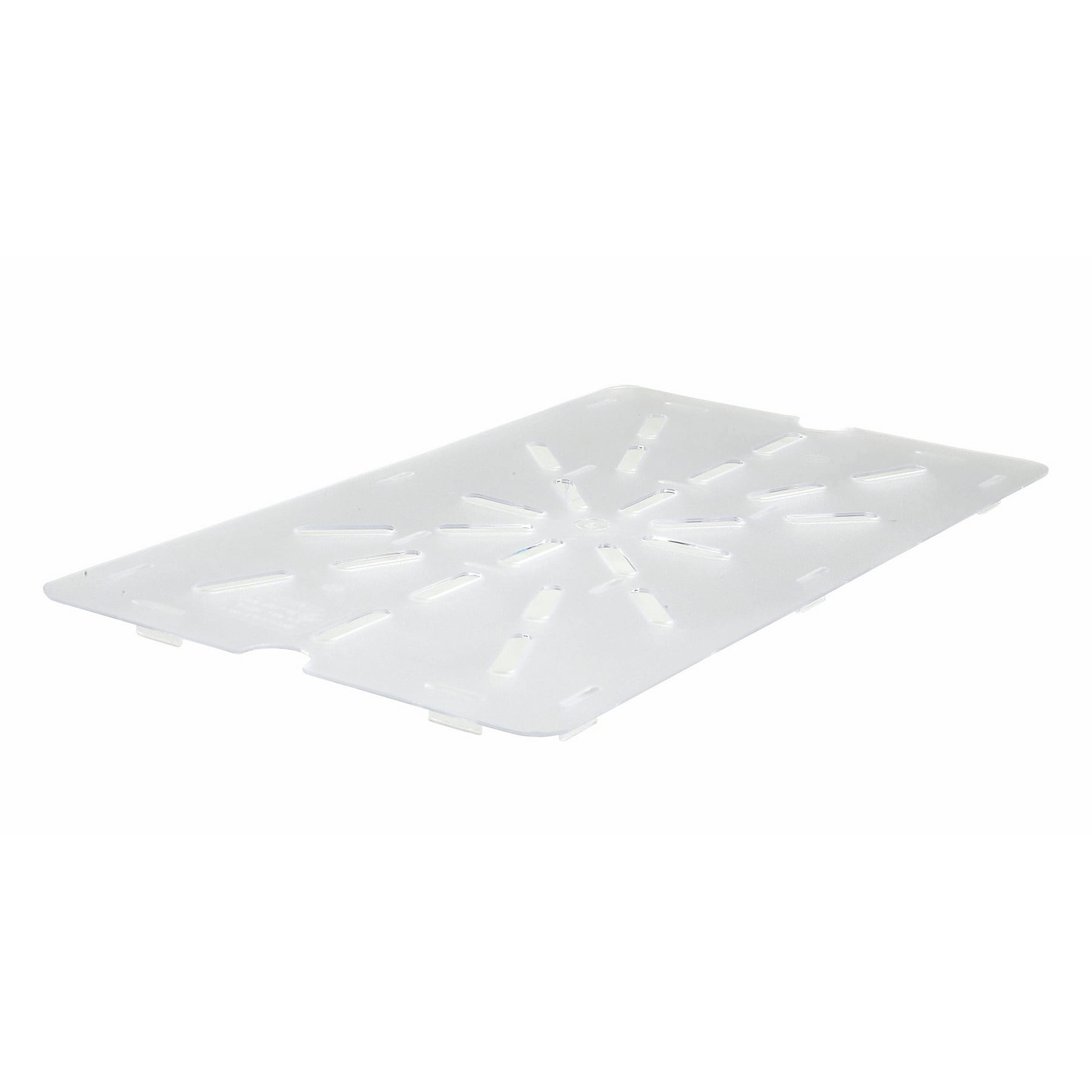 This full size drain shelf allows excess moisture to drain from the food products. The polycarbonate construction also allows the product to steam during high cooking temperatures.