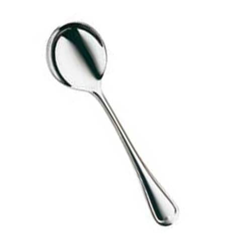 This soup spoon from WMF features 18/10 stainless steel construction for long lasting beauty and durability. It is 6-1/2" long and the simple design will blend with any table setting. Perfect for restaurants or banquet facilities.