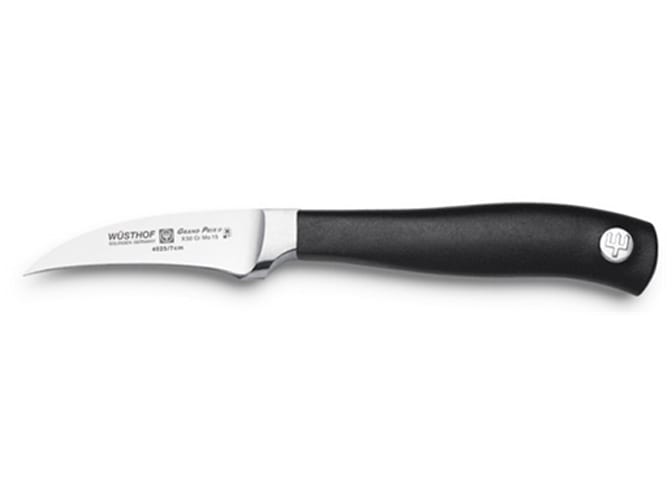 This Wusthof Grand Prix II Bird's Beak Peeling Knife is designed to fashion the most perfect slices of your favorite small fruits and vegetables. The small blade is curved upward to product decorative cuts for your food arrangements.