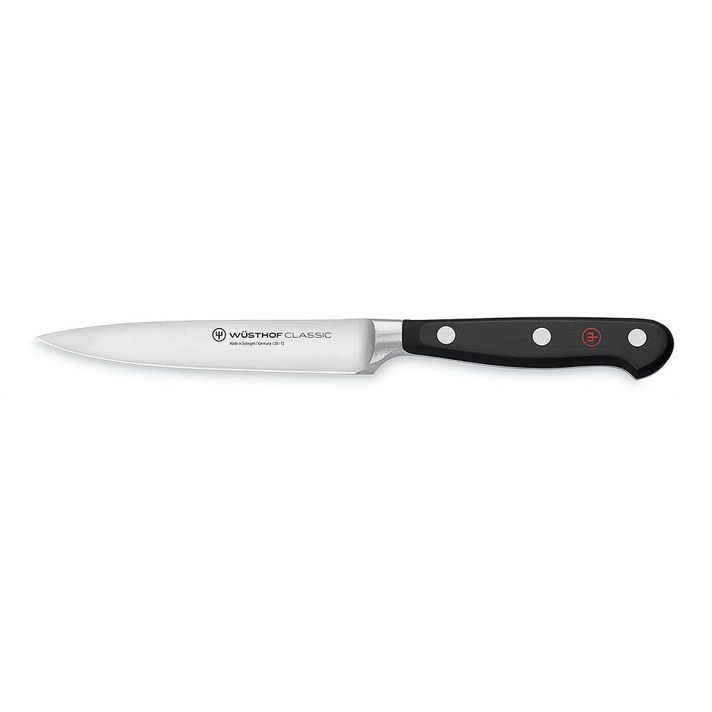 This Wusthof Classic 4‐1/2" Classic Utility knife's fully forged blade excels at cleaning the medium to large fruits and vegetables that are too much of a challenge for the average paring knife.