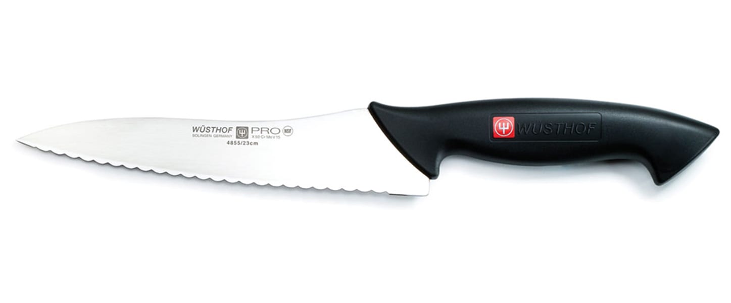 This Wusthof Pro Series 9 Off‐Set Wavy Bread Knife is designed exclusively for the tough day‐to‐day demands of the commercial kitchen