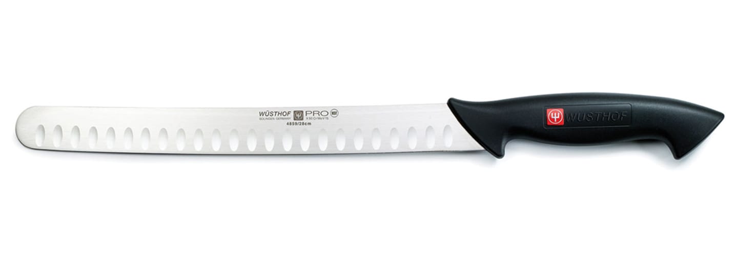 This Wusthof Pro Series 11 hollow edge slicing knife with granton edge is designed exclusively for the tough day‐to‐day demands of the commercial kitchen