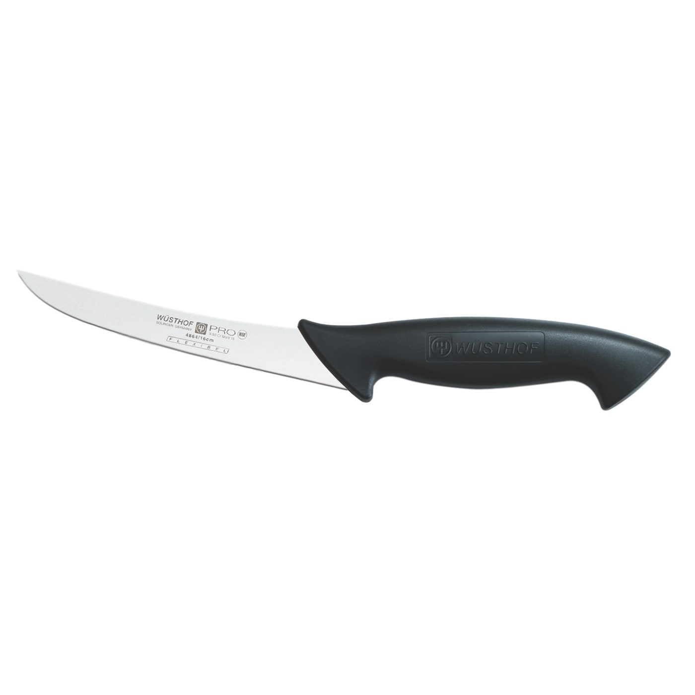 This Wusthof Pro Series 6 Semi‐Flexible Curved Boning Knife features ‐ a semi‐flexible curved
