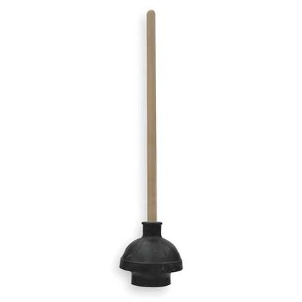 This forced cup plunger has a cup diameter of 6" and a handle length of 21". This commercial grade plunger is made from durable rubber with wood handle construction.