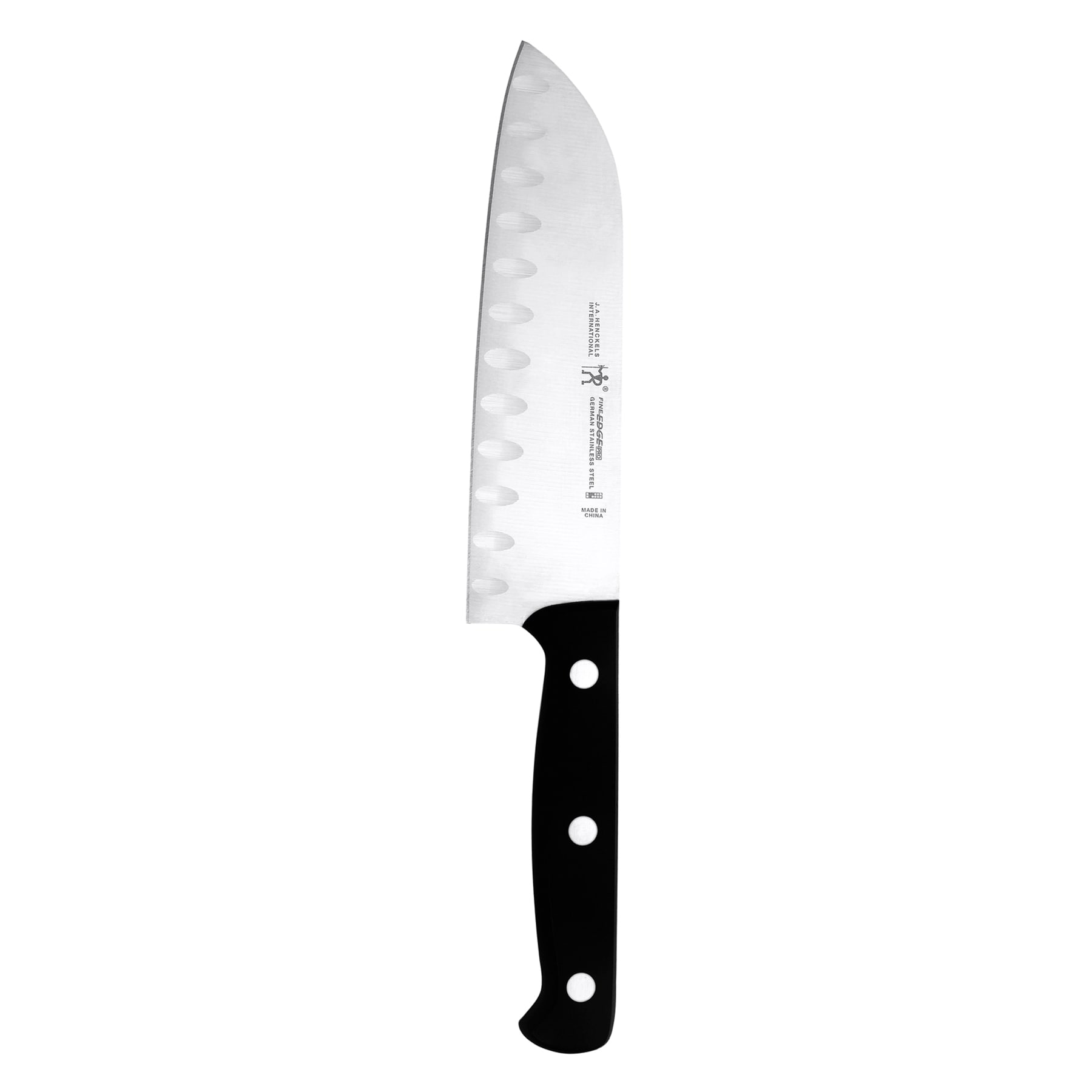 This Fine Edge 5 Hollow Edge Santoku Asian styled knife features a broad blade and especially sharp cutting edge. The all around winner of the Asian kitchen can be used for threefold: for preparing meat, fish and also vegetables.